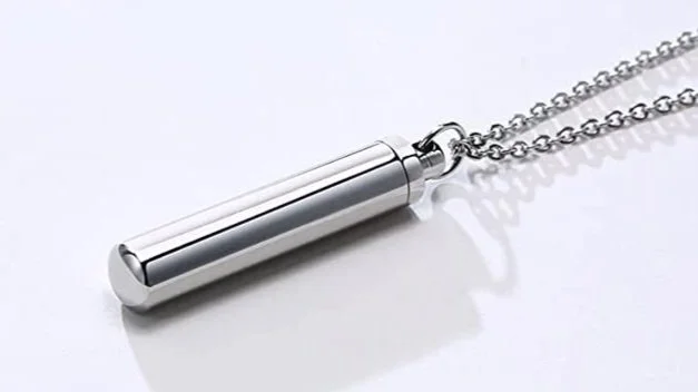 Our pets are by our side and with us always in our hearts. A small portion of the ashes can be placed into a discrete stainless steel pendant that you may carry with you around your neck, hold during walks, or with you anytime. The pendant is 1.5 inches long and 0.3 inches wide.